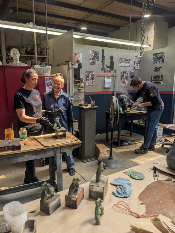 We collaborate closely with artists to refine tone, contrast, and surface quality, often developing samples and working through iterations to achieve the desired result. Because patina is inherently organic, we guide expectations around variation and the natural evolution of the finish over time.